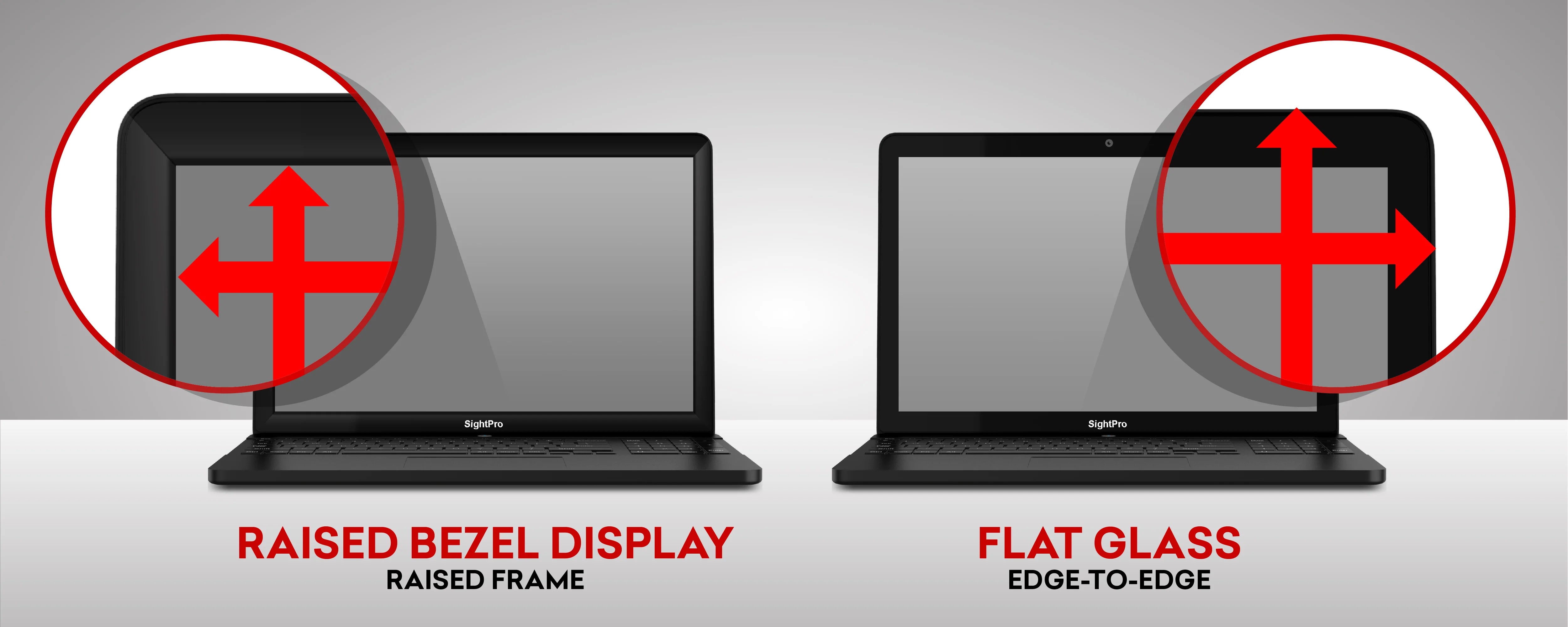These types of screens have a raised frame around the edge of your laptop, "framing" it in.